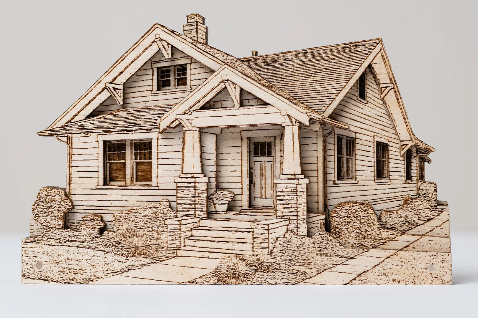 Each piece starts as a photo — and becomes a layered wooden sculpture using precision lasers and skilled hands. Whether it’s a cozy home, historic storefront, or vacation cottage, your memory is transformed into a custom keepsake that captures remarkable detail.