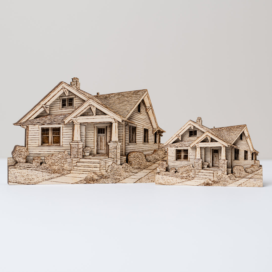 Rather than redrawing the structure from scratch, your photo is carefully prepared and refined into a custom design that preserves its character while translating it into our signature layered wooden style.